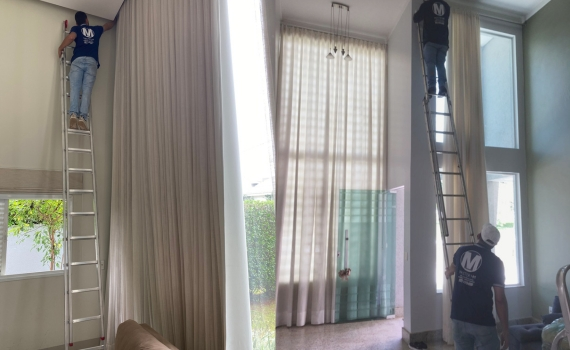 Cortinas limpas e impecáveis. somos especialistas em cortinas pé direito duplo. Solicite um orçamento e veja a diferença!